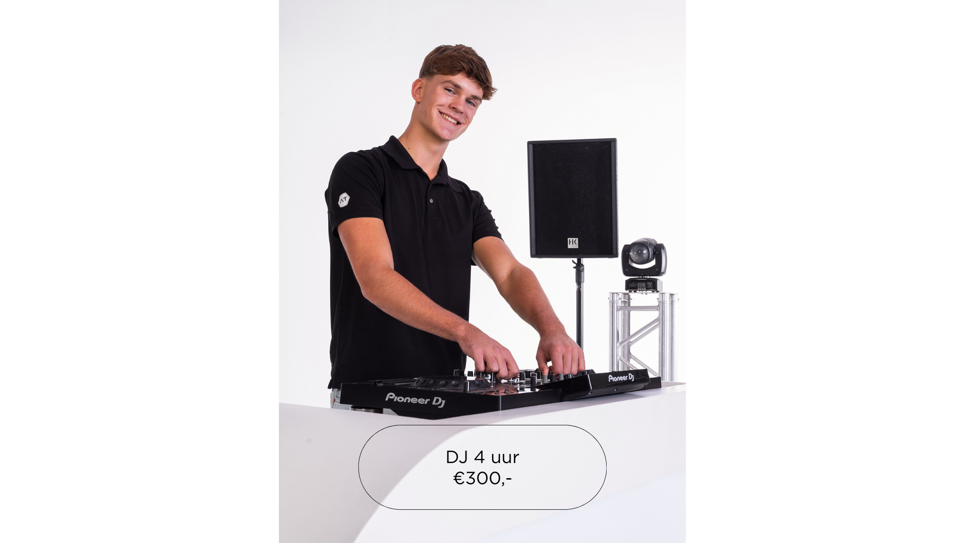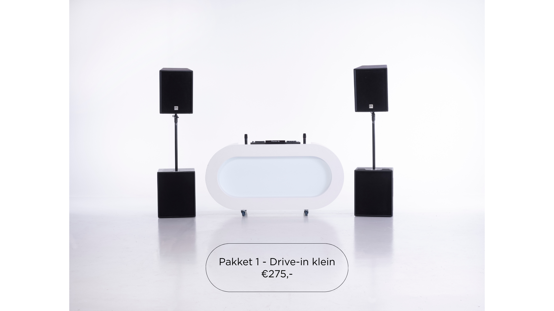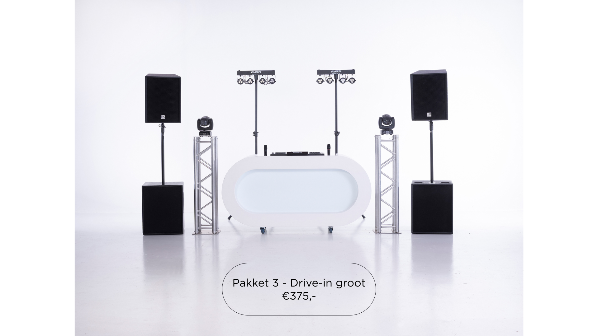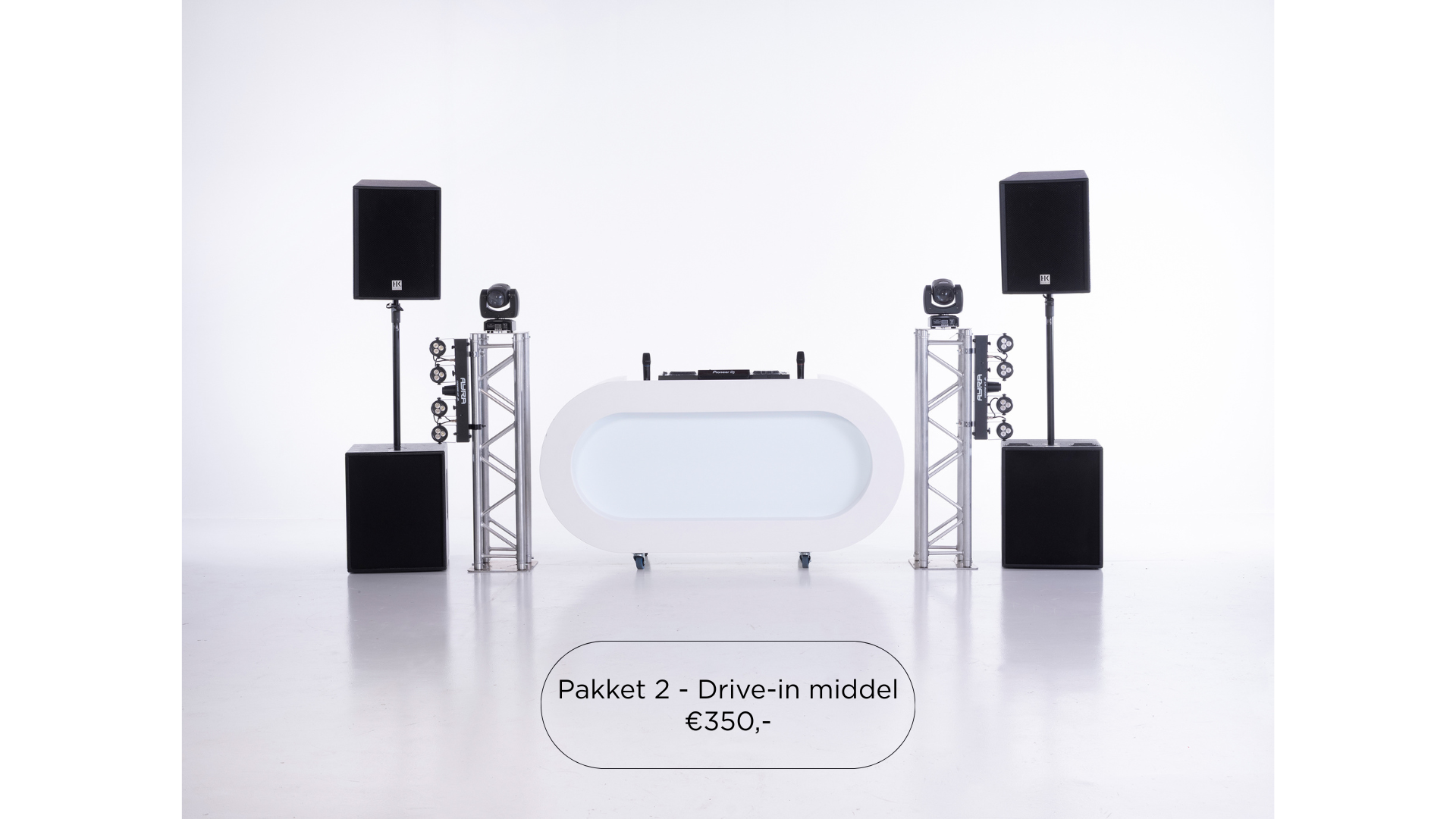 De ideale basis voor ieder feest. Dit pakket bestaat uit krachtige speakers en een strakke DJ-booth.
