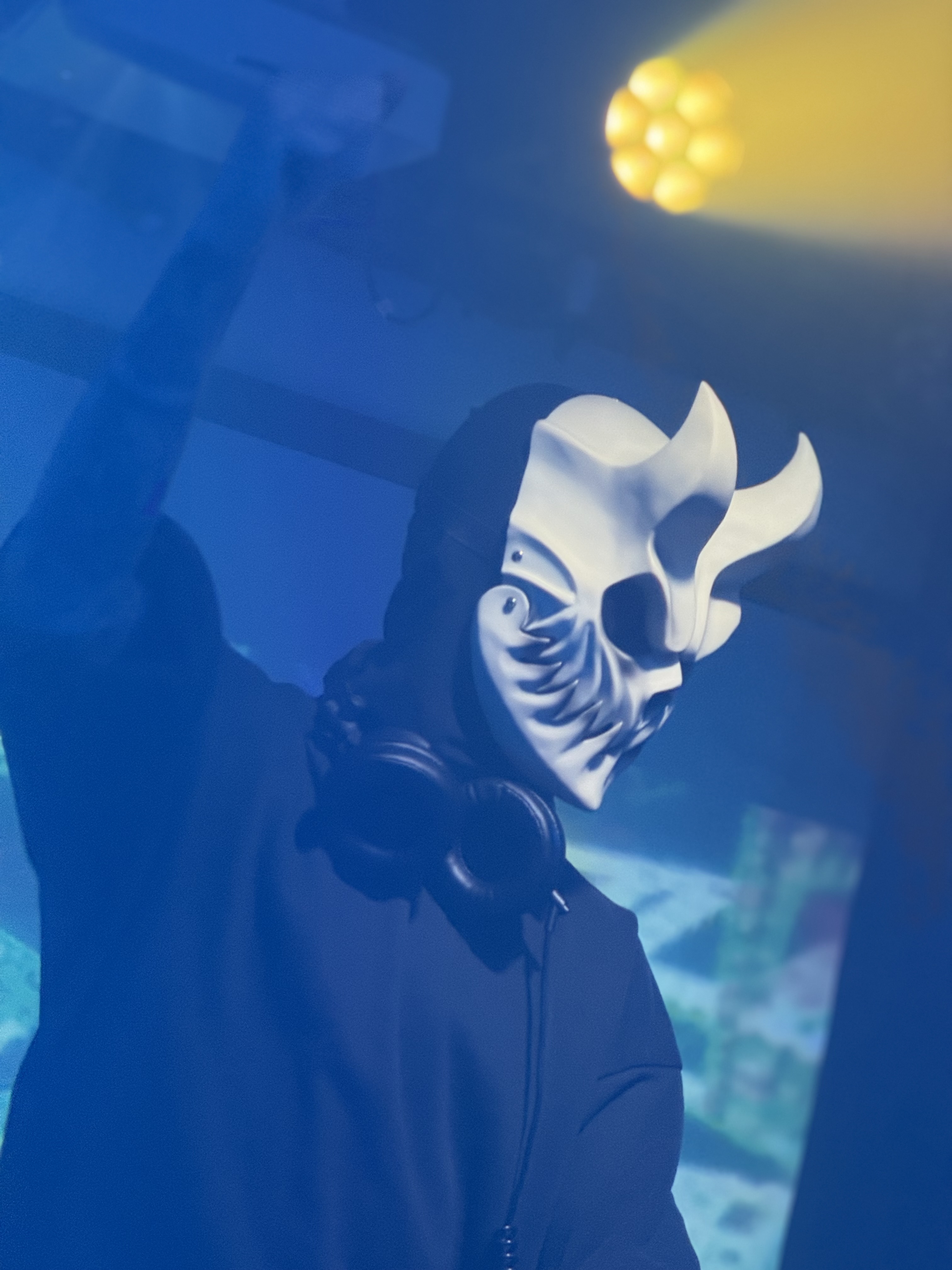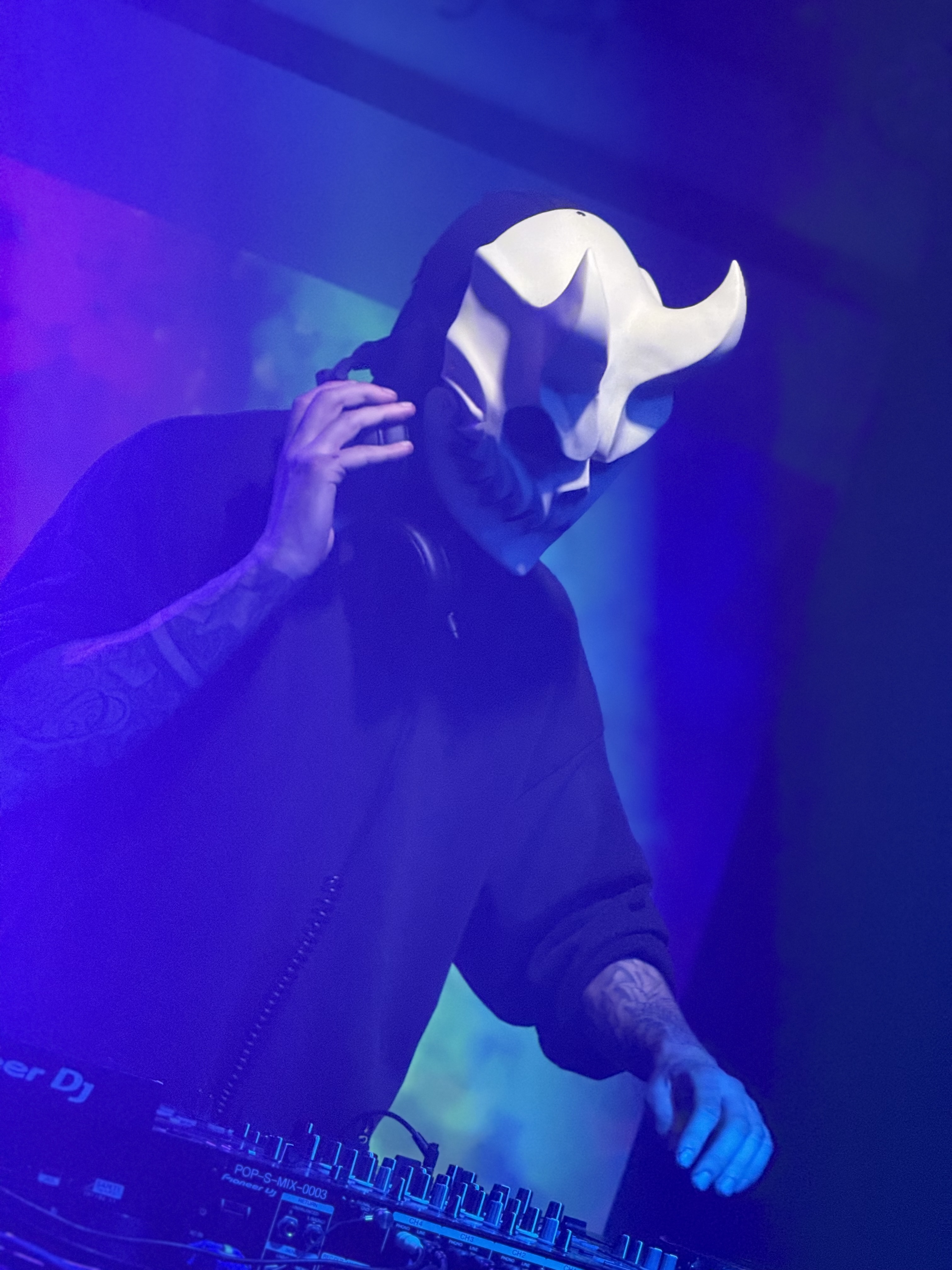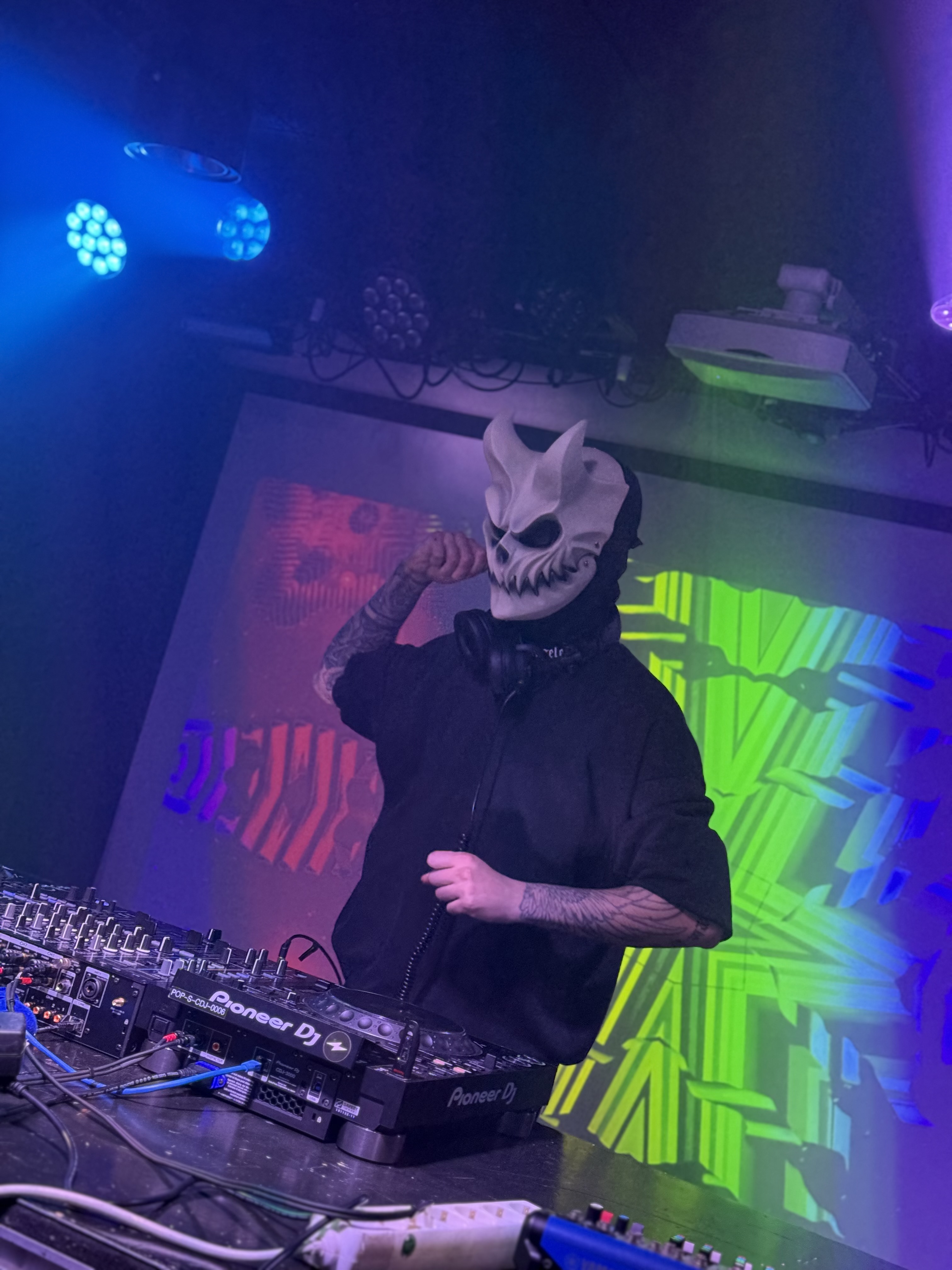 Zijn sets zijn hard, snel en compromisloos. Rauwe kicks, industriële sounds en een constant hoog tempo. Geen rustmomenten — alleen druk.