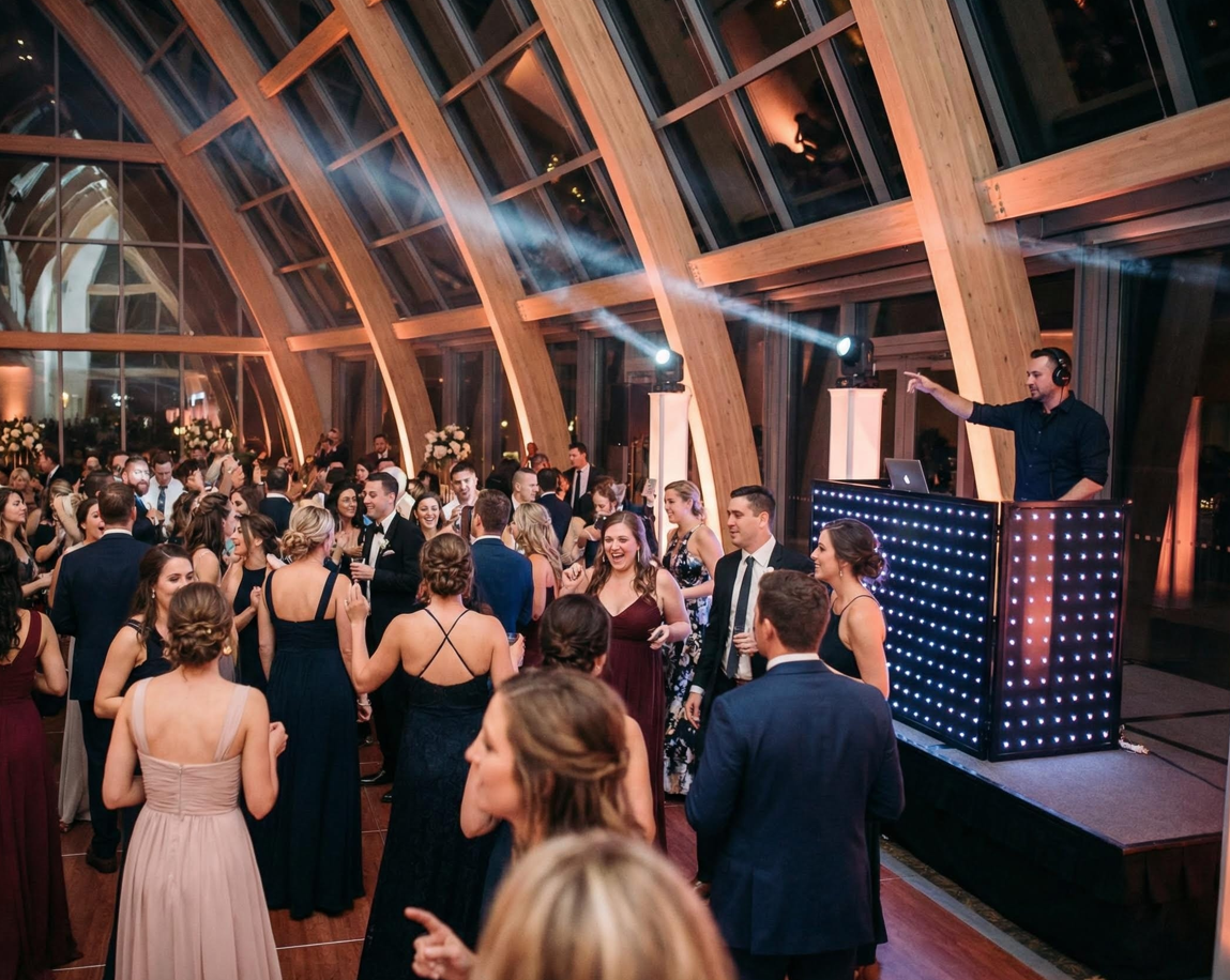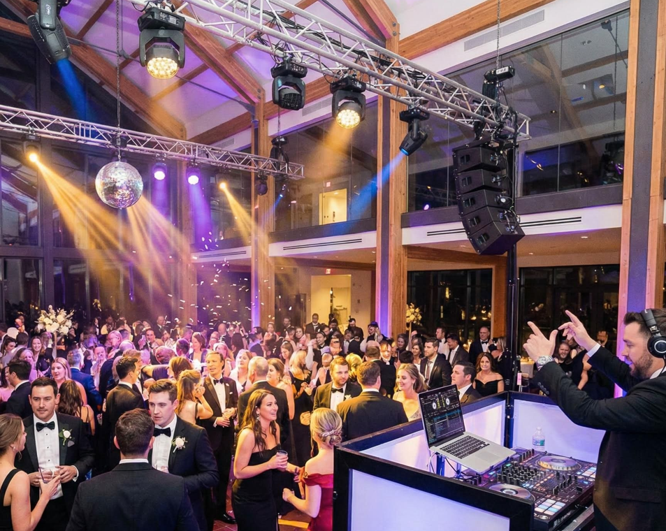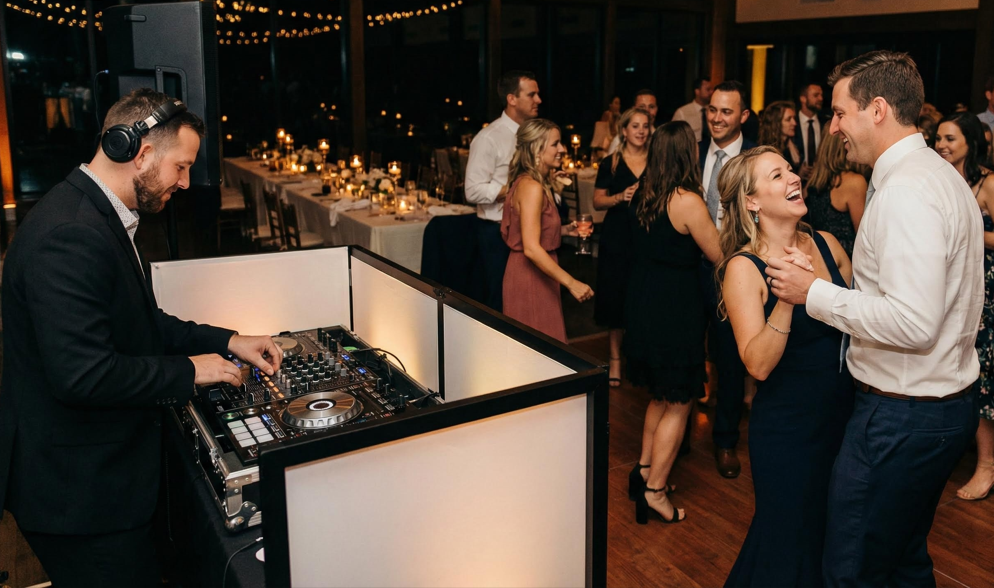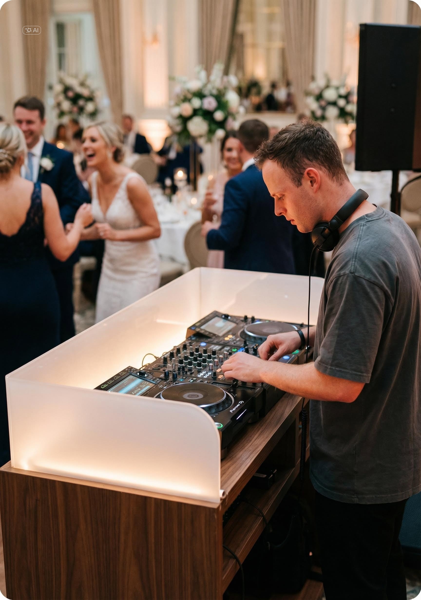 Tijdens de bruiloftbeurs boeken jullie een complete DJ-show inclusief ervaren DJ, licht & geluid en op- en afbouw.